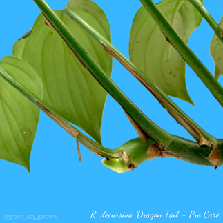 Rhaphidophora decursiva, commonly known by its cultivar name 'Dragon Tail', is an easy to care for, visual striking, and fast growing houseplant.